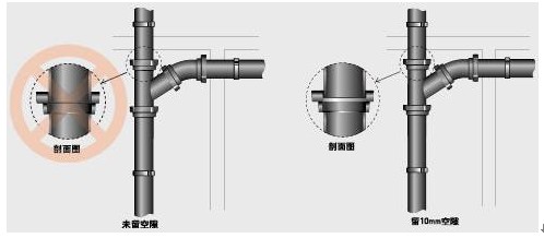 工藝規(guī)定承插口之間應(yīng)留約10mm間隙,以利伸縮,操作中多忽略此點(diǎn)而將承插口抵死。應(yīng)事先作出標(biāo)記,保證留有間隙。