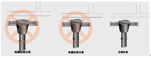 地漏安裝過高,影響排水功能;安裝過低,影響地面美觀。在安裝排水管承水口前,應(yīng)確切了解地漏規(guī)格和地面裝飾層厚度,計(jì)算出排水承口的合理標(biāo)高。