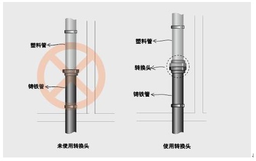 六、塑料管與鑄鐵管混用問題
